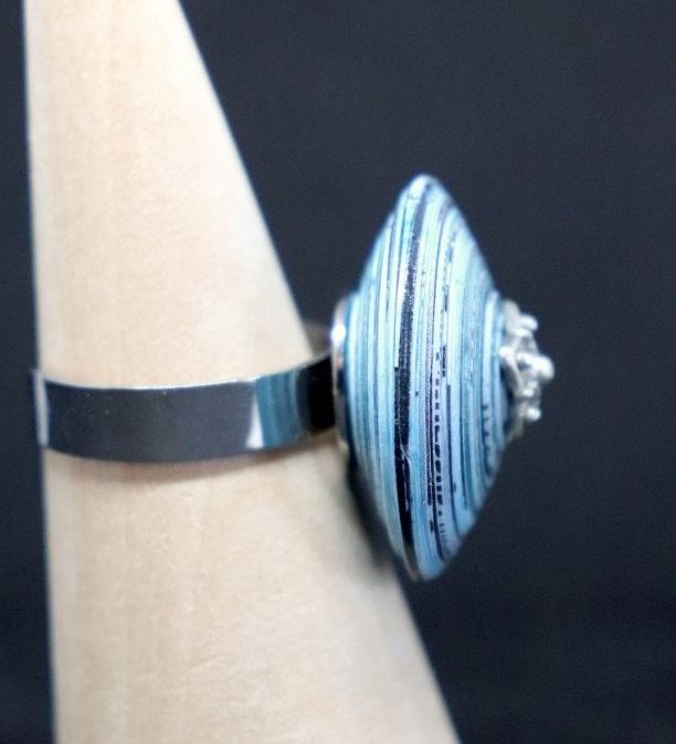 Monté sur un anneau argenté, elle a un côté élégant et original. Sans être trop imposante, elle se fait remarquer à votre main par sa forme et ses couleurs.