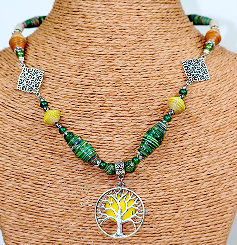 Telle une balade en forêt par un bel après midi ensoleillé, ce collier apporte une touche de Nature et de sérénité.